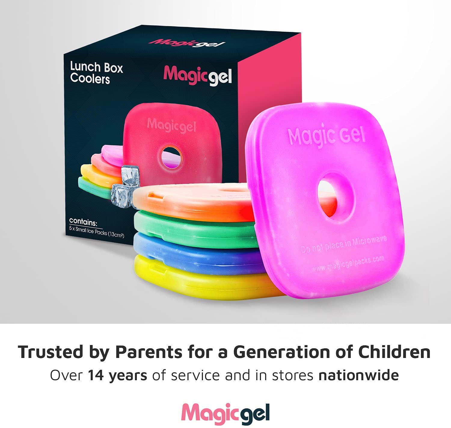 These fit right inside your lunch box and stay colder than our competition – because it’s a gel based, rather than a water based coolant!